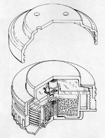 Triggering Mechanism: Both mines use a simple pressure fuze. The top of the mine is a round pressure plate. When roughly 5–10 kg or more of force (e.g. a person’s footstep) is applied, a thin shear wire inside breaks, releasing a spring-loaded firing pin that snaps into a detonator. This ignites a booster and then the main charge, causing a blast directed upward. The explosion can severely wound the victim’s foot or leg. The mines are non-fragmenting (they rely on blast effect only, with no metal shrapnel). A plastic safety cap covers the pressure plate during transport and is removed to arm the mine. Deminers can neutralize the mine by replacing the safety cap or carefully unscrewing the base to remove the detonator/booster.